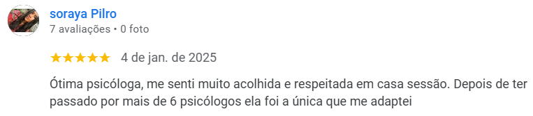 Avaliação do progresso: O avanço pode ser observado por meio de mudanças emocionais e de comportamento, que podem ser pequenas no início. Converse com o psicólogo para avaliarem juntos seu progresso. -